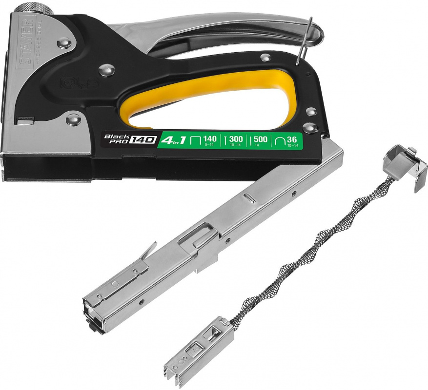 Степлер ручной Stayer BlackPro 140 скобы тип 140(6-14мм)/36(10-14мм)/300(10-14мм)/500(14мм)