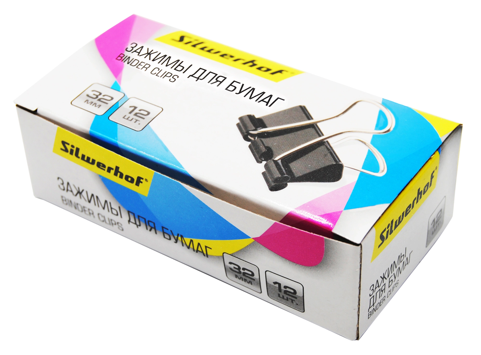 Зажимы Silwerhof 510016 сталь 32мм черный (упак.:12шт) картонная коробка
