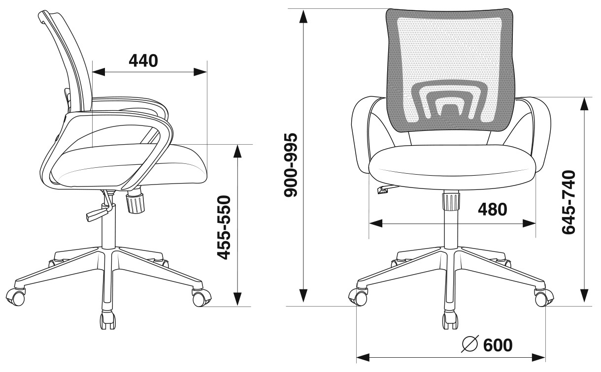 Кресло Бюрократ CH-695N оранжевый TW-38-3 сиденье черный TW-11 сетка/ткань крестов. пластик