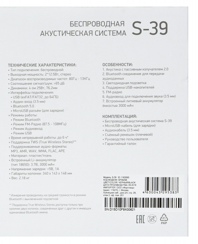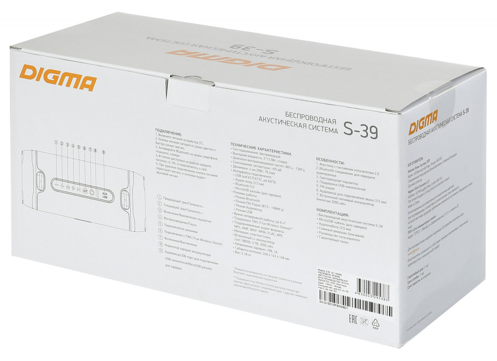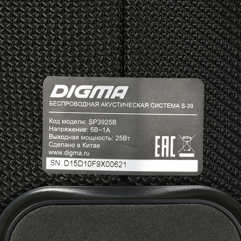 Колонка порт. Digma S-39 черный 25W 1.0 BT/USB 3000mAh (SP3925B)