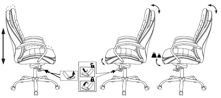 - Особенностифункция "антишок" - плавно возвращает спинку после снятия блокировки качания