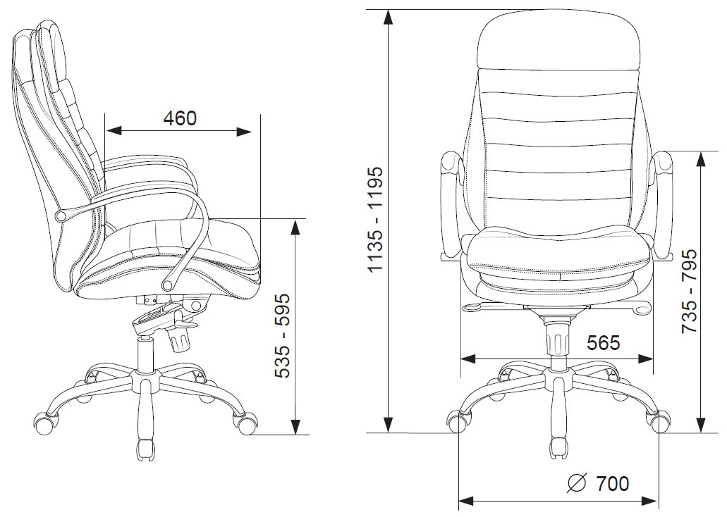 - Ширина сиденья565