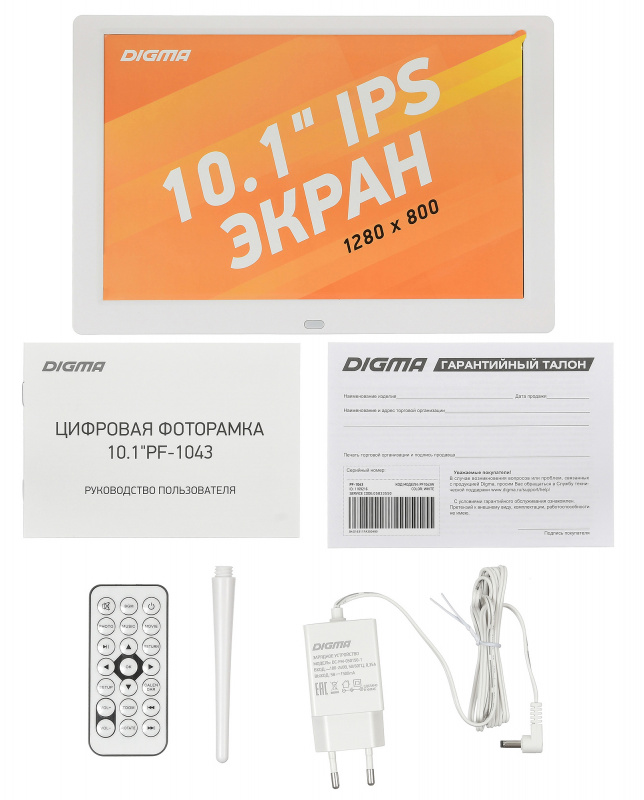 Фоторамка Digma 10.1" PF-1043 1280x800 белый пластик ПДУ Видео