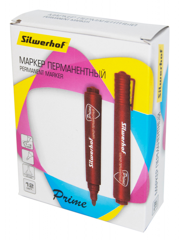 Маркер перманентный Silwerhof Prime пулевидный пиш. наконечник 1-3мм красный коробка