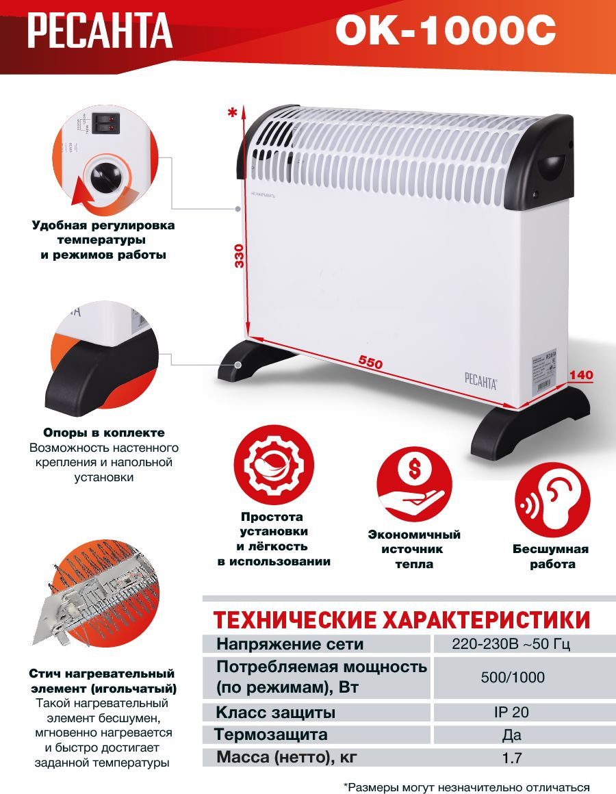 Конвектор Ресанта ОК-1000С 1000Вт белый