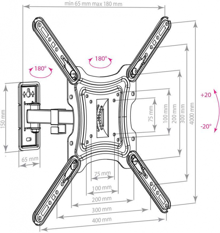 Надежная стальная конструкция. Универсальный - телевизор на кронштейне можно наклонить, повернуть и сдвинуть к стене. Легкий монтаж. Кабель-канал.