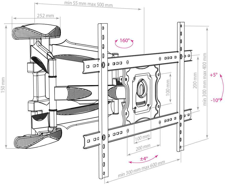 Кронштейн для телевизора Arm Media COBRA-60 черный 32"-65" макс.45кг настенный поворотно-выдвижной и наклонный
