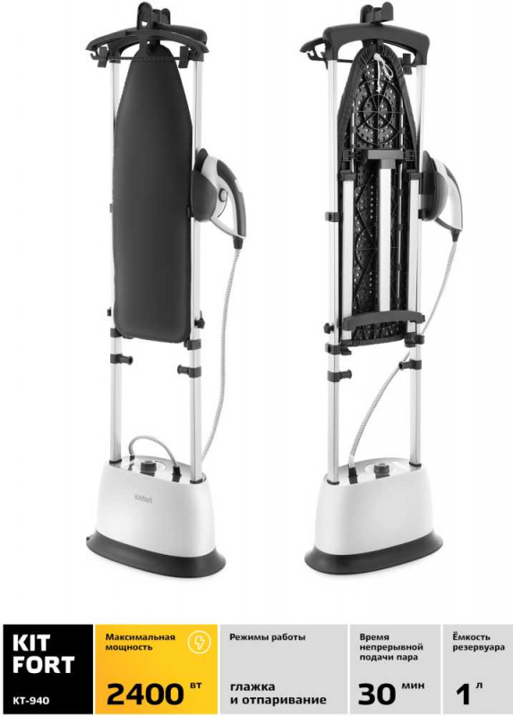 Отпариватель напольный Kitfort КТ-940 2400Вт белый/серый