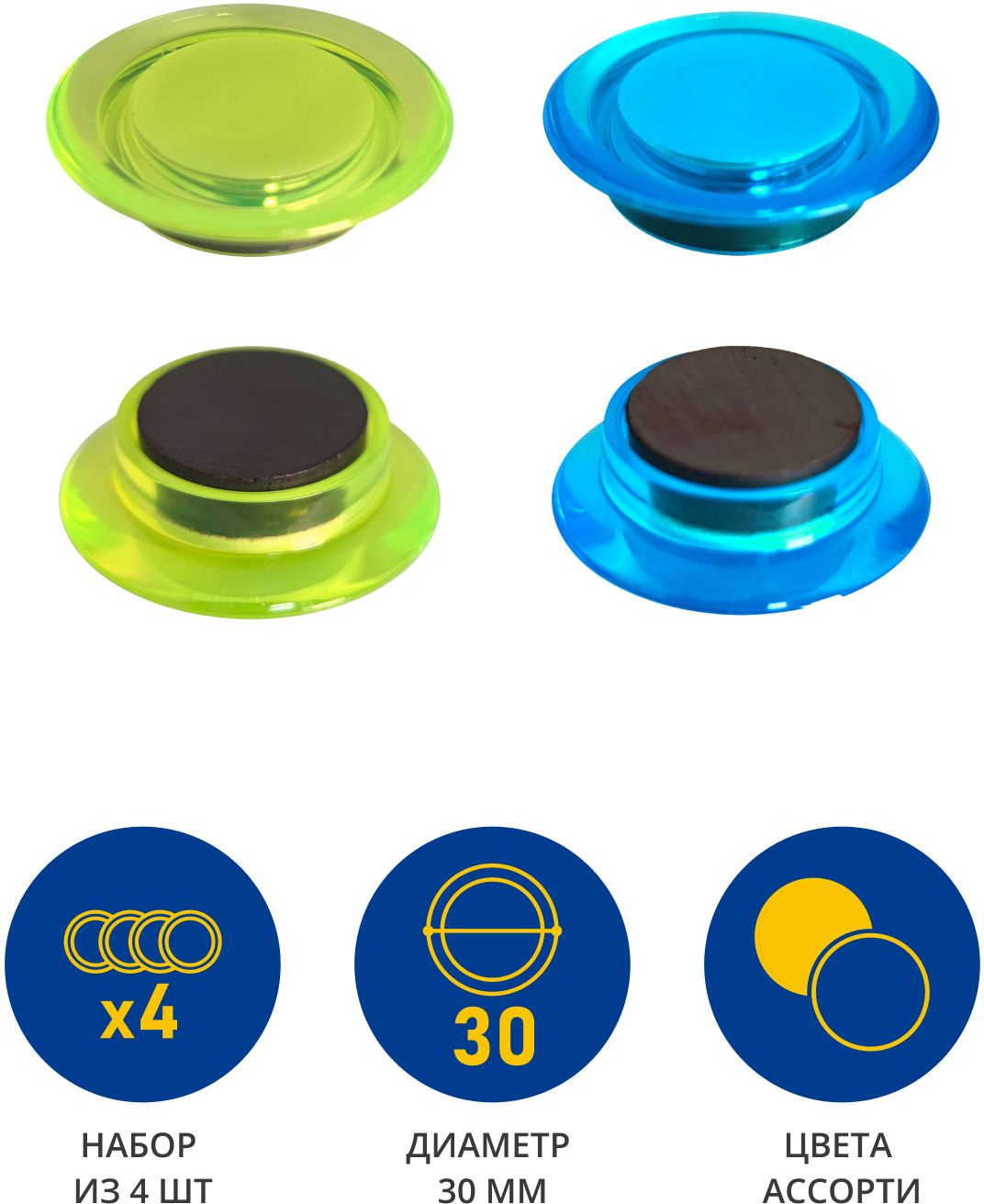 Магнит Kw-Trio 8303M для досок пластик ассорти d30мм круглый (упак.:4шт)
