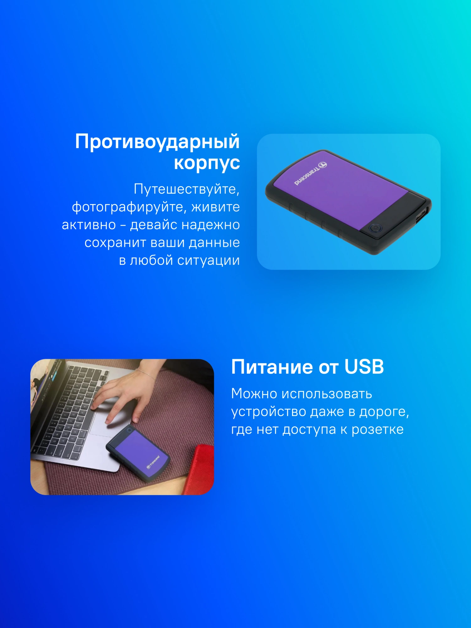 - Комплект поставкивнешний диск, кабель USB, инструкция