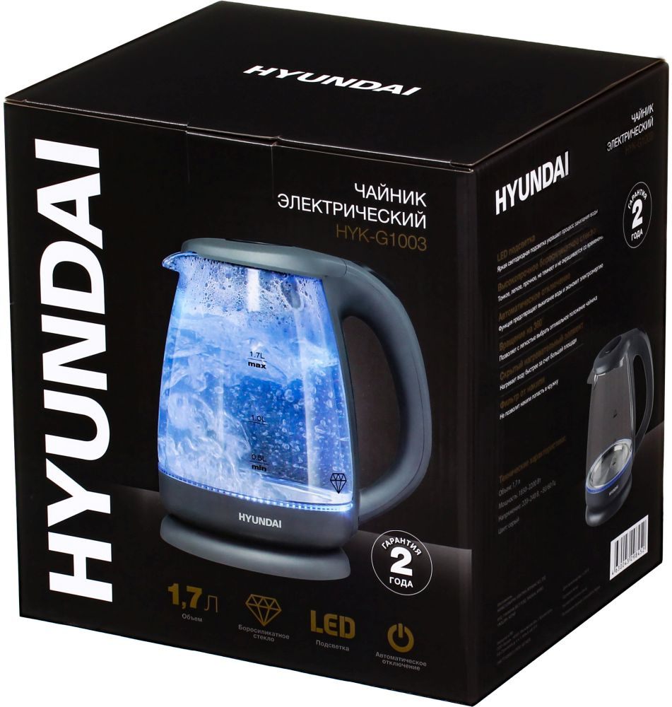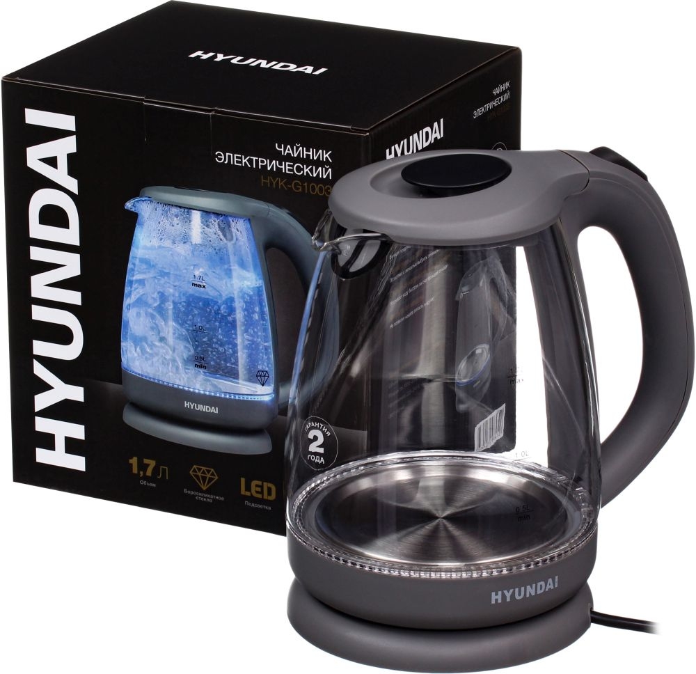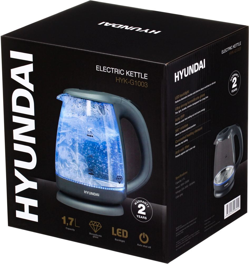Чайник электрический Hyundai HYK-G1003 1.7л. 2200Вт серый корпус: стекло/пластик