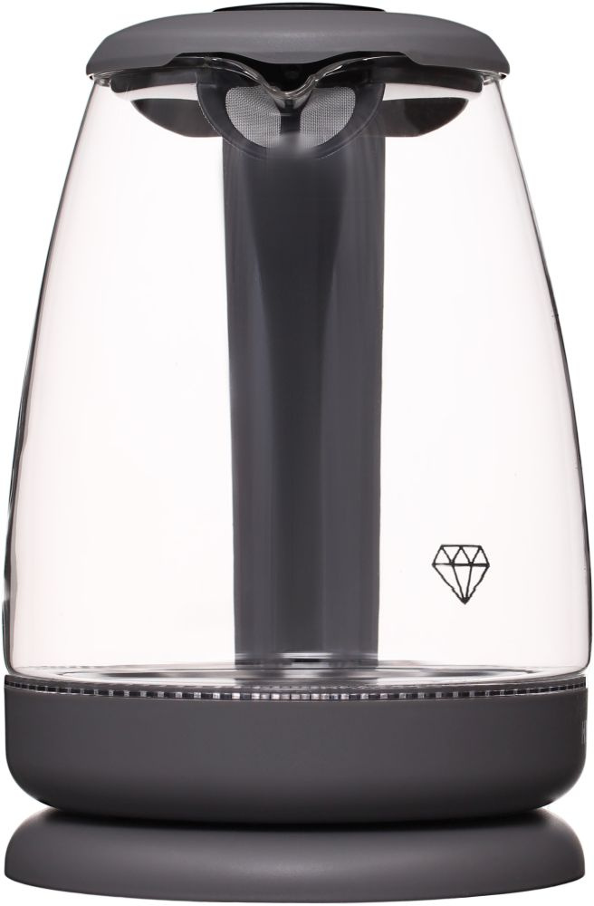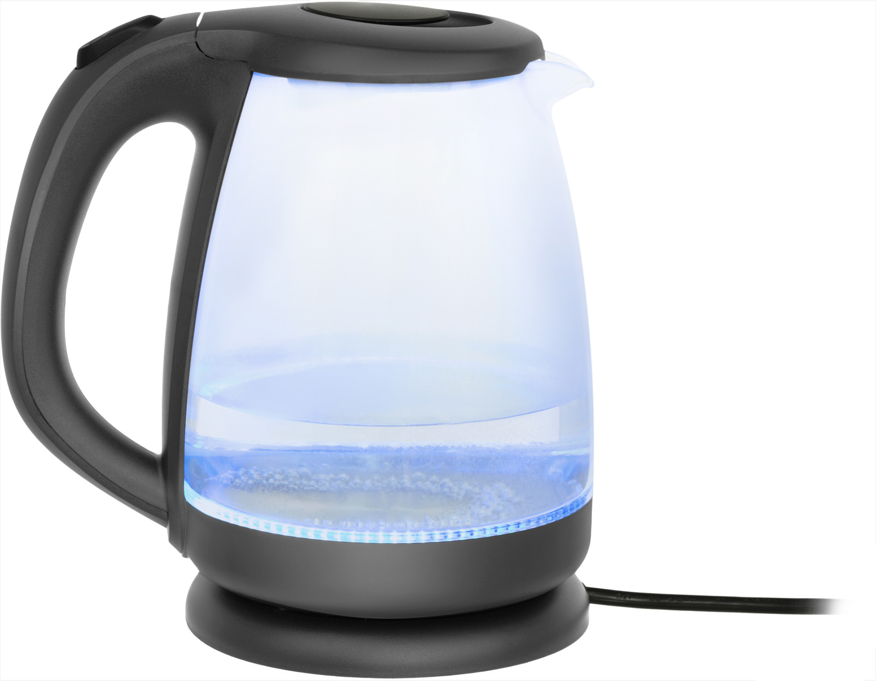 - ОсобенностиВ чайнике используется высококачественное боросиликатное стекло, легкое, прочное, не темнеет и не окрашивается со временем. Красивая голубая LED подсветка украшает процесс закипания и оповещает о включении прибора. 2 года гарантии.