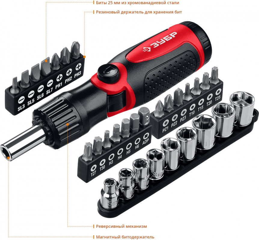 Отвертка Зубр Мастер 25161-H31 в компл.:31 предмет
