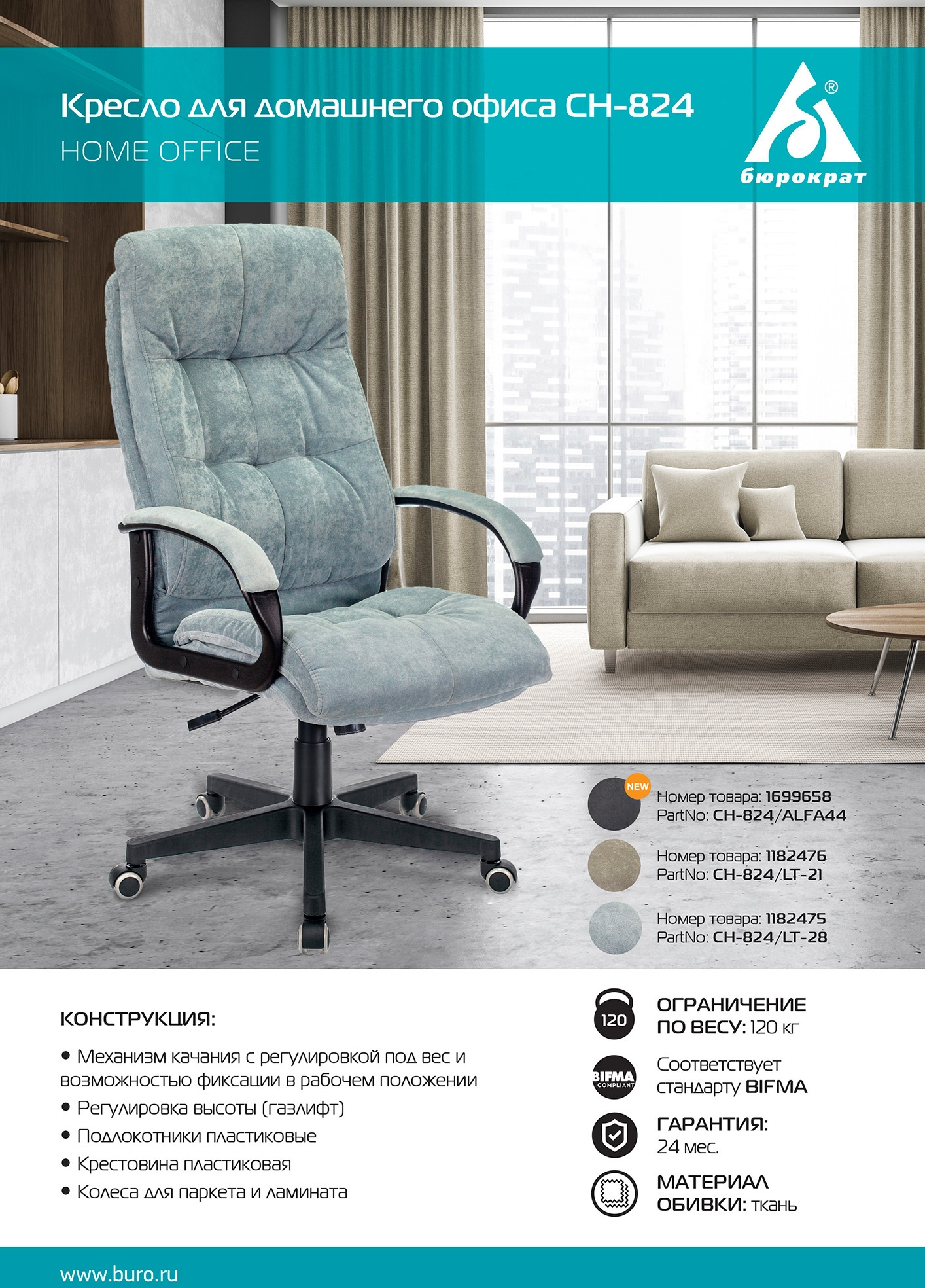 Кресло руководителя Бюрократ CH-824 Fabric серо-голубой Light-28 крестов. пластик