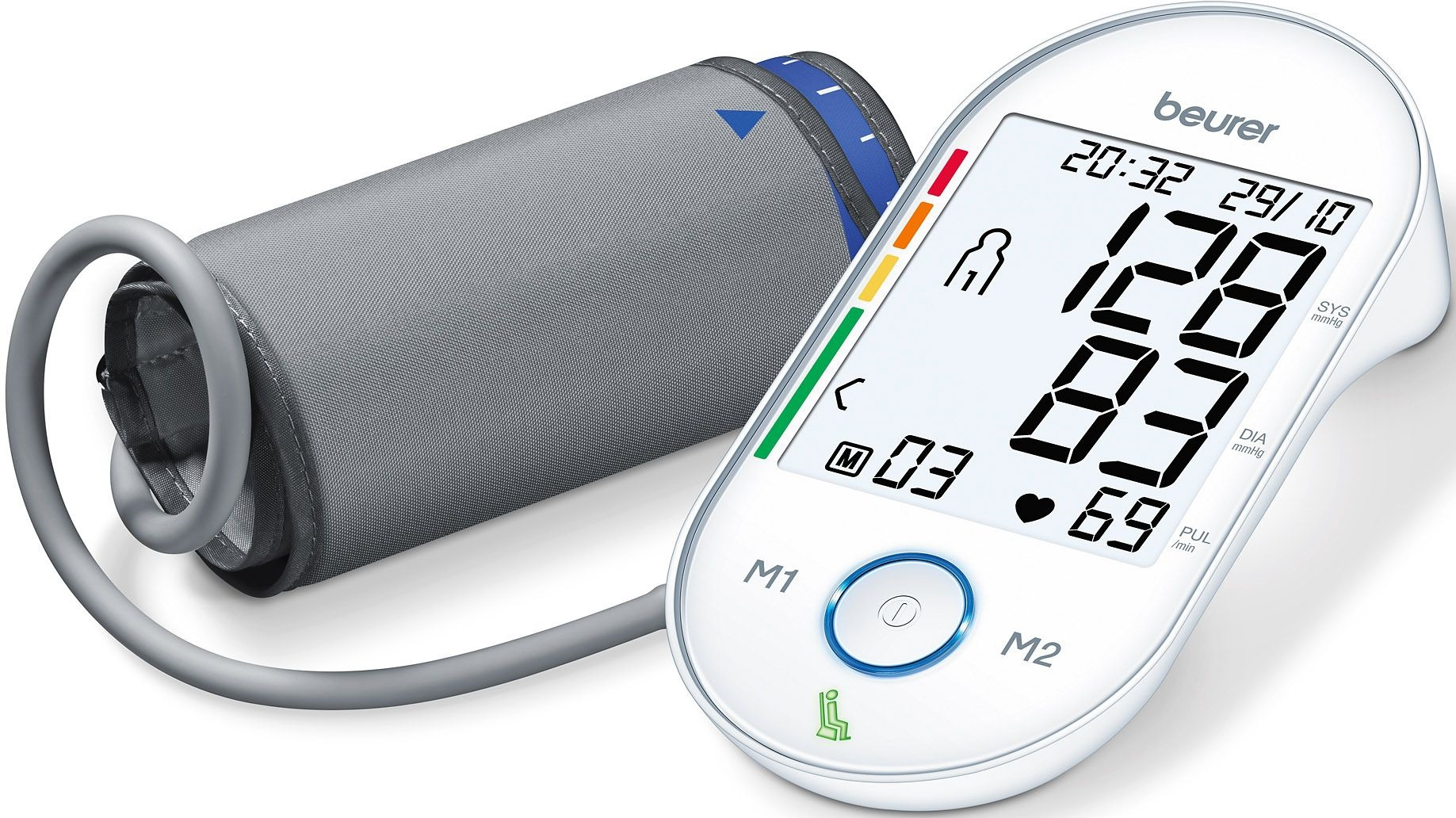 Исключительно точный, высококачественный и безопасный прибор для измерения кровяного давления в плечевой артерии с запатентованным индикатором положения стабилизации, большим дисплеем с белой подсветкой и сенсорными кнопками.