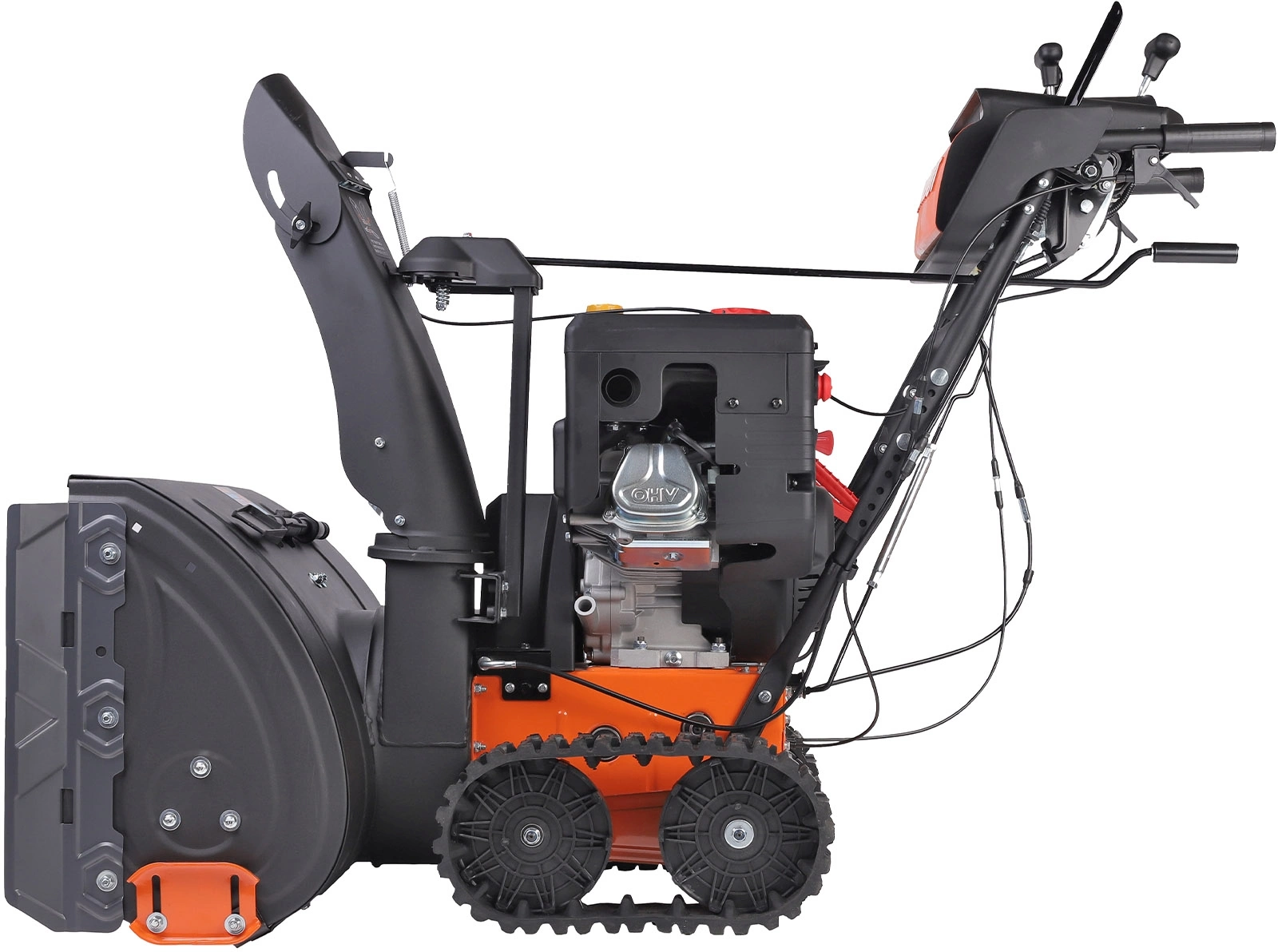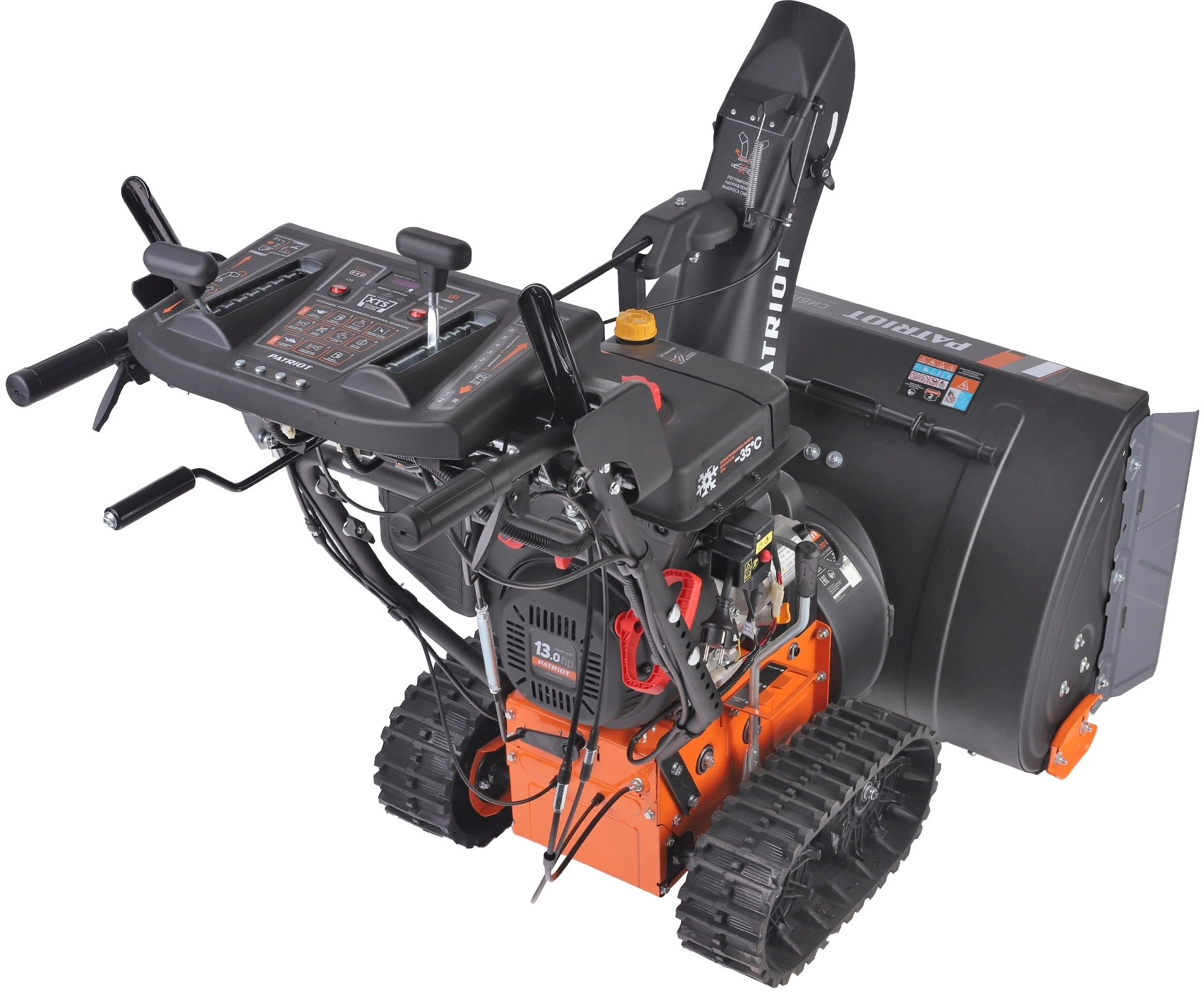 Один из самых "укомплектованных" снегоуборщиков. Мощный двигатель 13л.с., фара и электростартер, а гусеницы обеспечивают максимальное сцепление с заснеженным грунтом и исключают скольжение, что дает возможность убирать тяжелый снег, а легкость разворота обеспечивается блокировкой дифференциала.