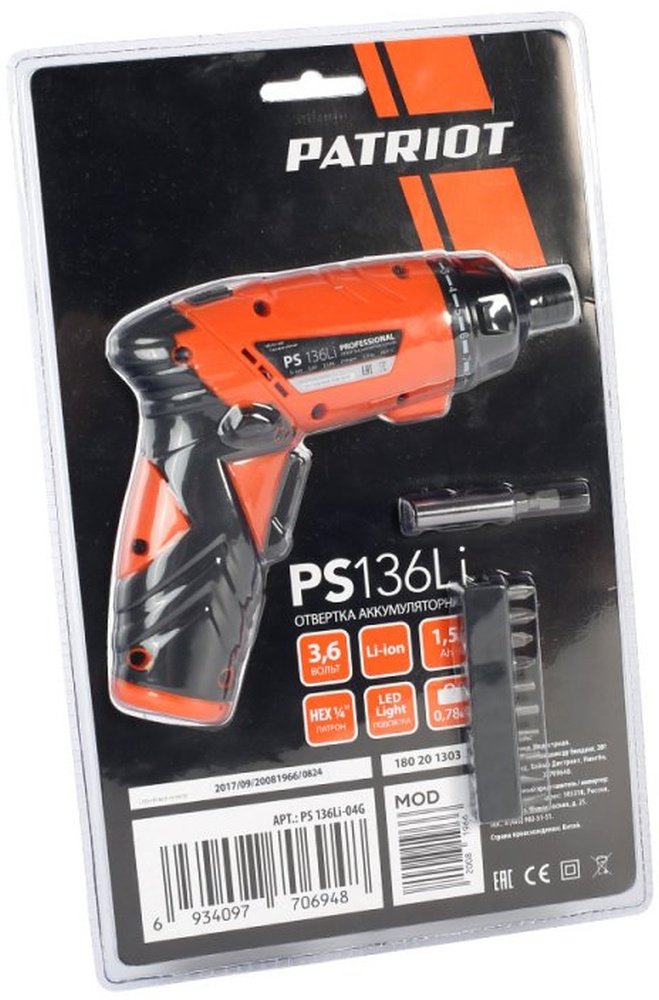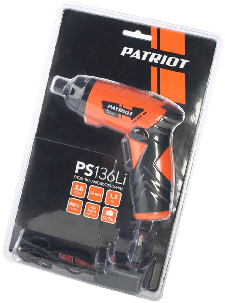 Отвертка аккум. Patriot PS 136 аккум. патрон:держатель бит 1/4" (180201303)