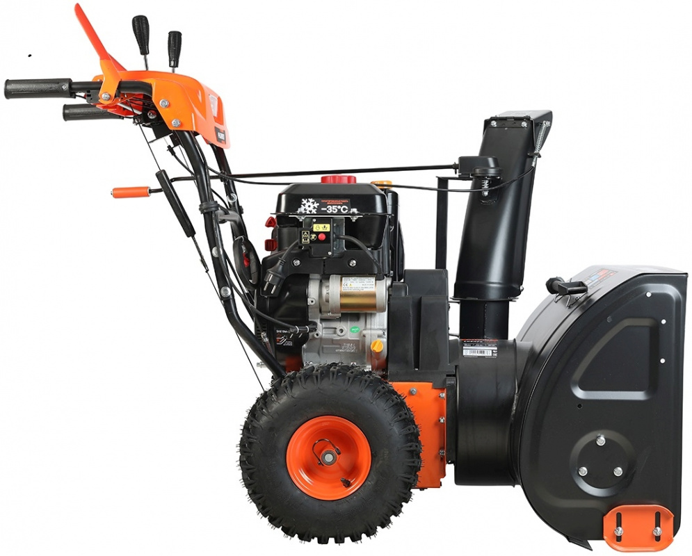 Очень мощный колесный снегоуборщик с двигателем 11 л.с. Наличие фары и электростартера в сочетании с двигателем большой мощности позволяет использовать его в самых сложных условиях и при больших объемах выпавшего снега. Функция "free hand control" позволяет управлять снегоуборщиком одной рукой.