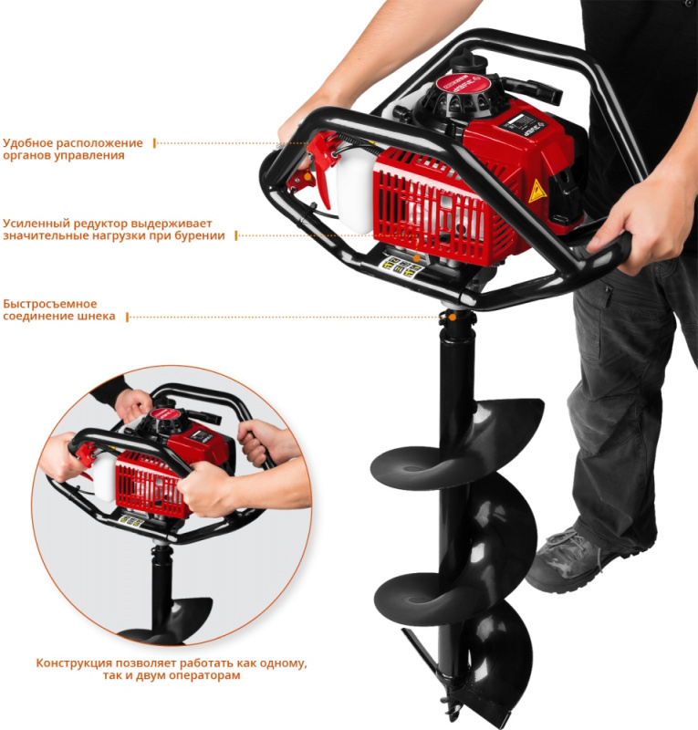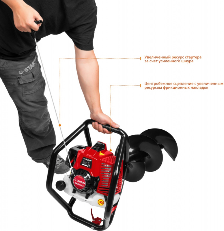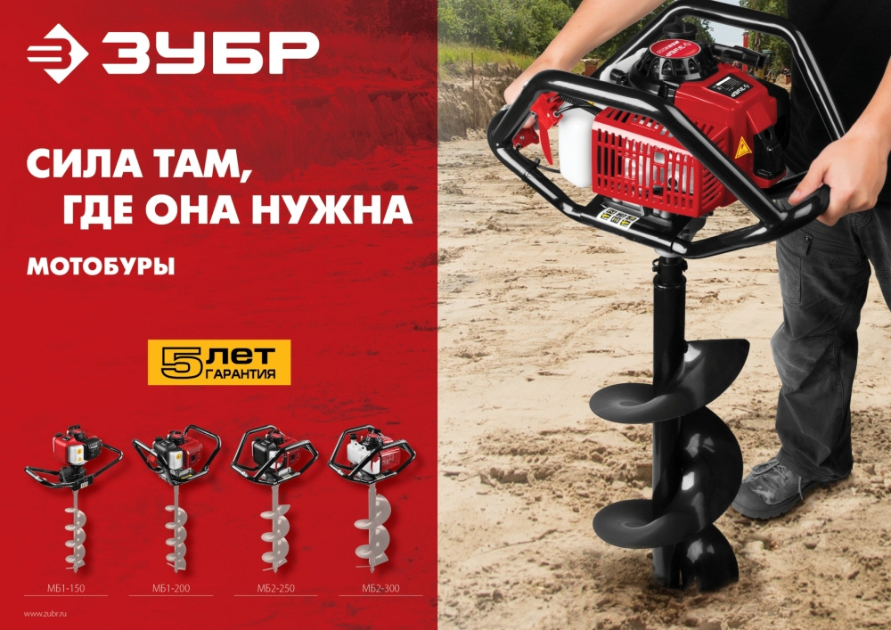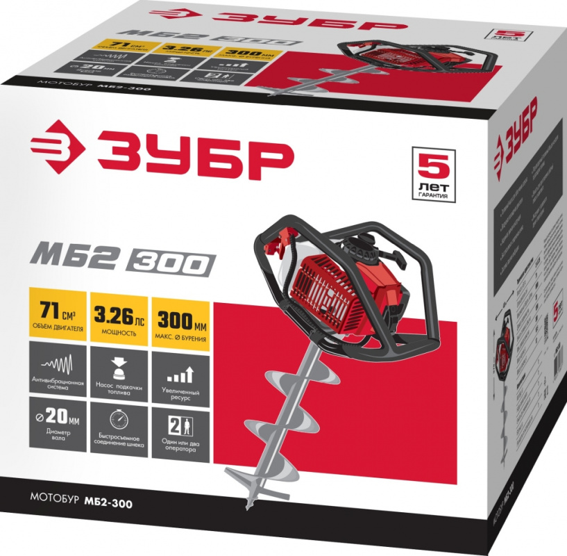Мотобур Зубр МБ2-300 профес. 2-х такт. 2400Вт 3.26л.с. 71см3 8800об/мин