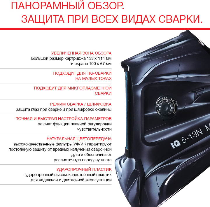 Маска ULTIMA 5-13 VISOR BLACK в черном цветовом исполнении с двумя диапазонами затемнения для различных типов сварки и резки 5-8/9-13 DIN и расширенной зоной обзора 100х67 мм. Сварочная маска отлично подходит для продолжительных сварочных работ при различных типах сварки.