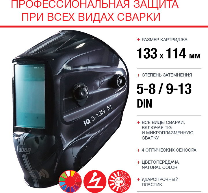 Маска сварщика Fubag IQ 5-13N M филь.:хамел. см.экр.100x67мм черный (38099)