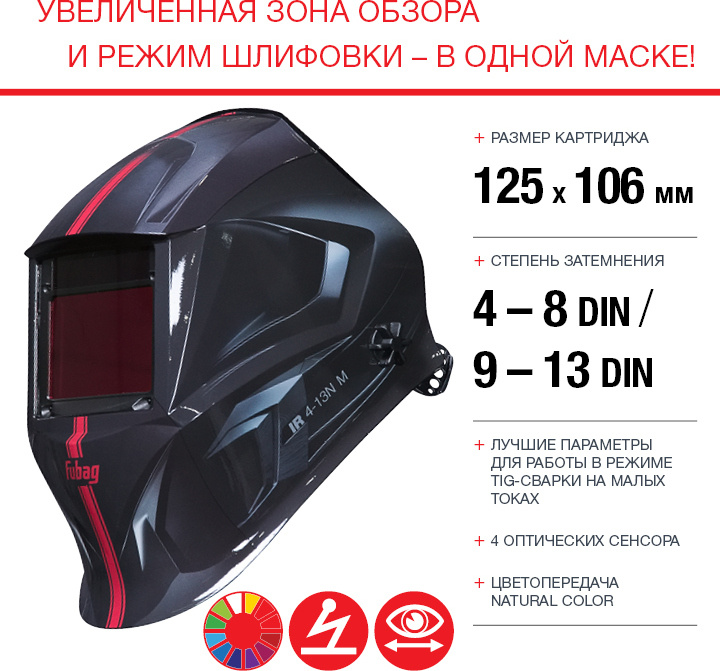 Маска Fubag OPTIMA 4-13 VISOR BLACK в черном цветовом исполнении с двумя диапазонами затемнения для различных типов сварки и резки 4-8/9-13 DIN, а также расширенной зоной обзора 100х65 мм и с улучшенным оснащением гарантируют комфортную работу и эффективную защиту.