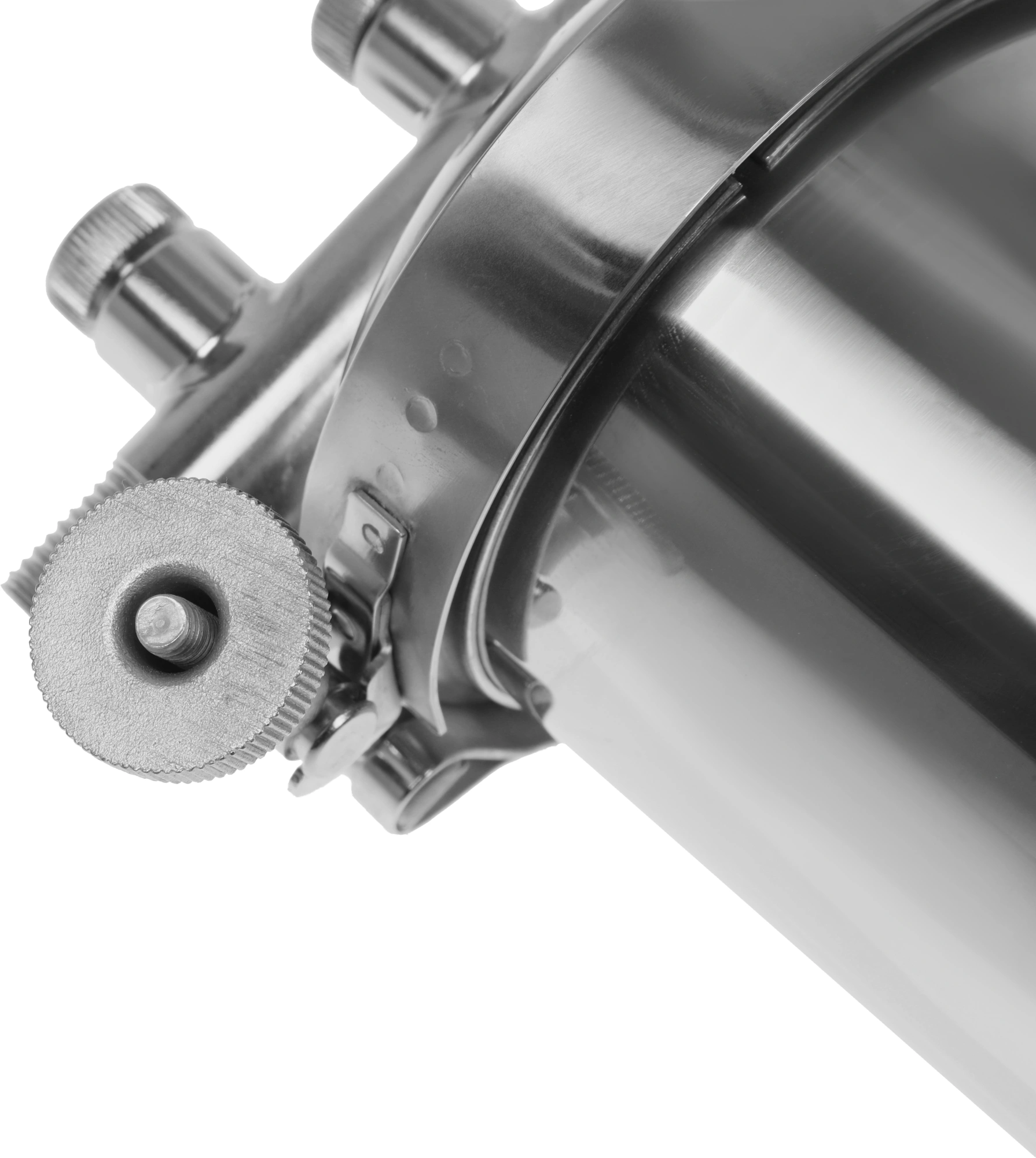 Корпус и крышка фильтра изготовлены из высококачественной нержавеющей стали марки 304L с металлической скобой. Корпус рассчитан на работу под давлением и установку на входе в систему горячего или холодного водоснабжения. Внизу корпуса находится клапан слива воды для удобной замены картриджа.