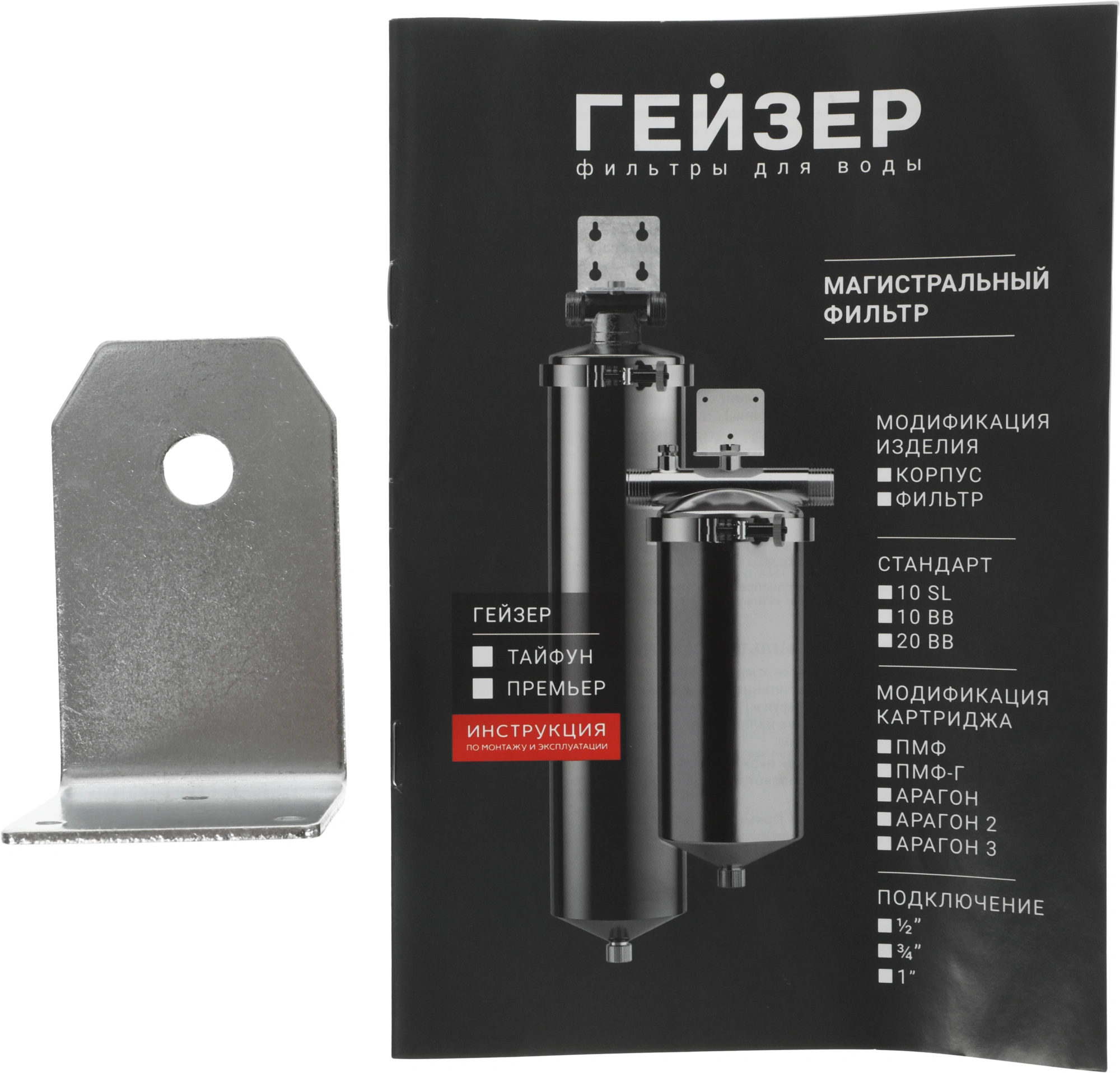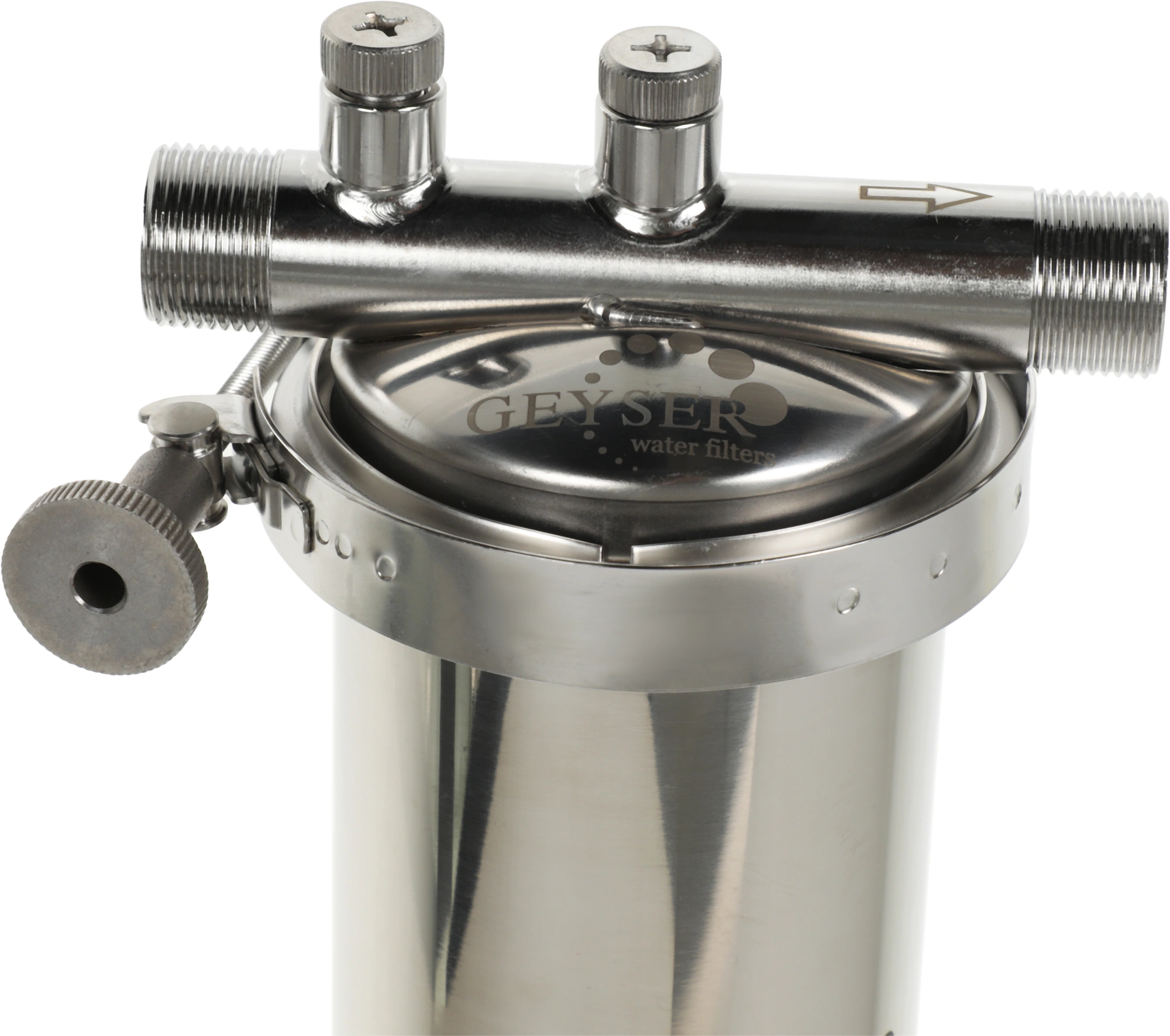 Корпус и крышка фильтра Гейзер Тайфун 10SL 3/4" изготовлены из высококачественной нержавеющей стали марки 304L с металлической скобой. Корпус рассчитан на работу под давлением и установку на входе в систему горячего или холодного водоснабжения.