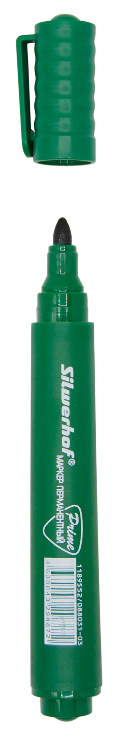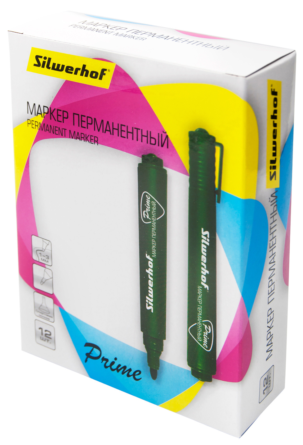 Маркер перманентный Silwerhof Prime пулевидный пиш. наконечник 1-3мм зеленый коробка
