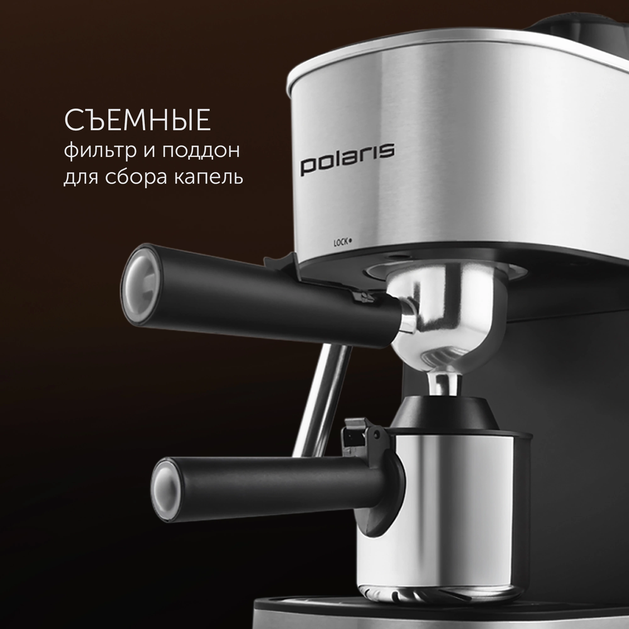 Кофеварка рожковая Polaris PCM 4008AL 800Вт нержавеющая сталь/черный