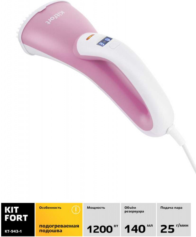 Отпариватель ручной Kitfort KT-943-1 1200Вт розовый/белый