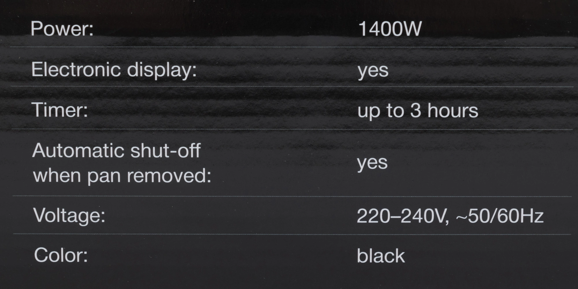 - Мощность конфорки1400 Вт