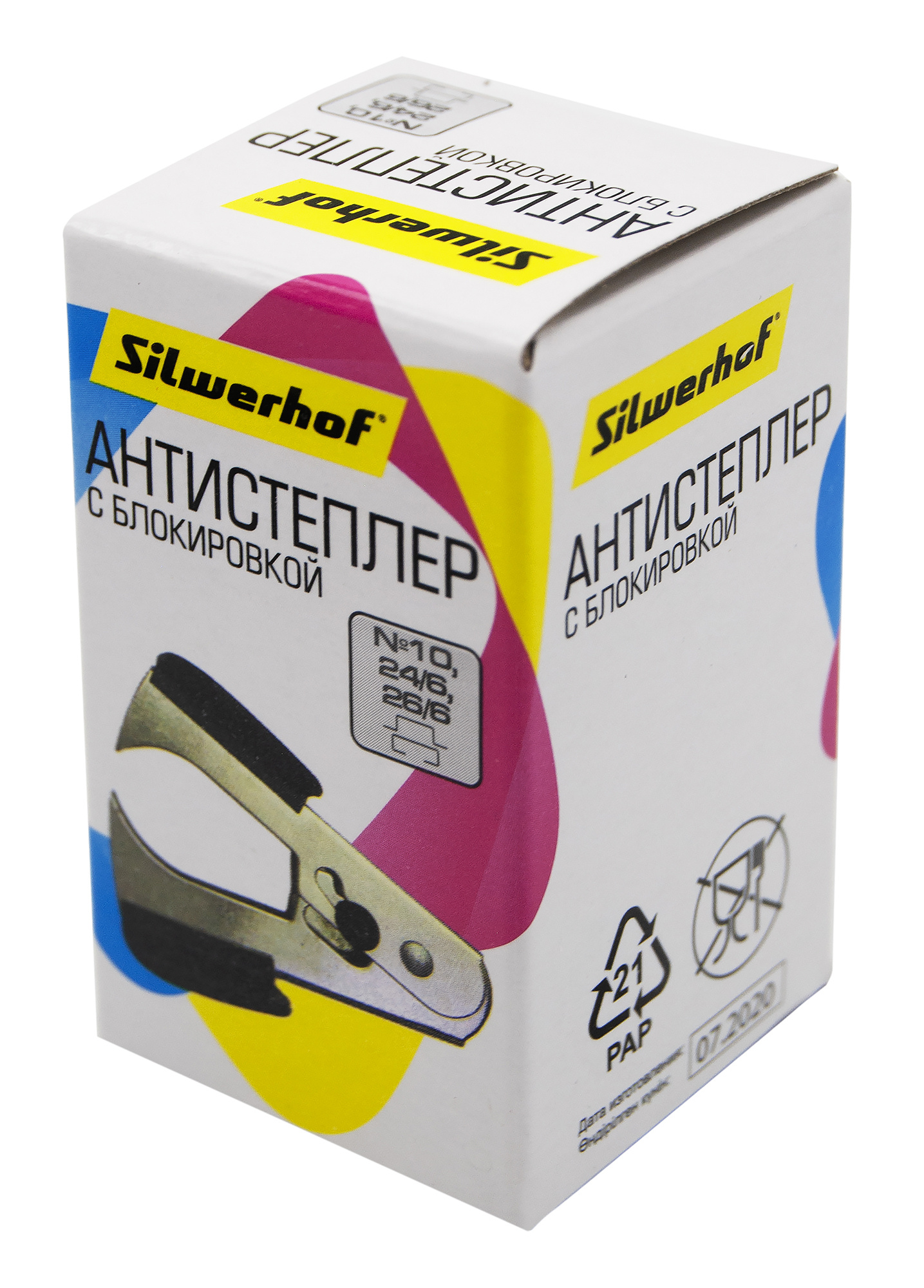 Антистеплер Silwerhof N10 24/6 26/6 черный с фиксатором коробка