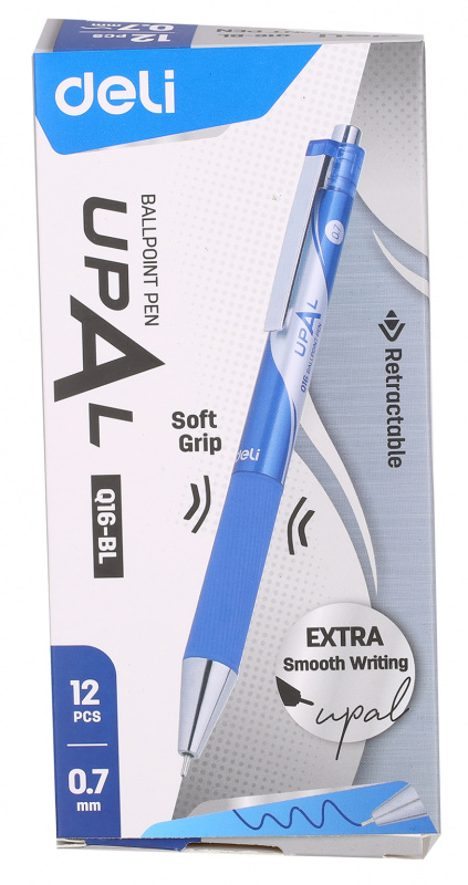 Ручка шариков. автоматическая Deli Upal EQ16-BL синий мет. d=0.7мм син. черн. резин. манжета