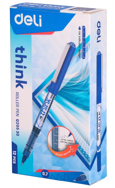 Ручка роллер Deli Think (EQ20530) синий d=0.7мм син. черн. стреловидный пиш. наконечник линия 0.55мм