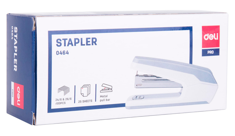 Степлер настольный Deli E0464WHITE Exceed 24/6 26/6 (25листов) белый 100скоб металл/пластик закрытый коробка