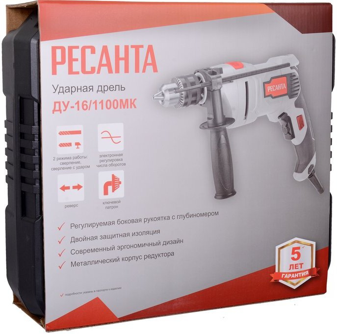 Дрель ударная Ресанта ДУ-16/1100МК 1100Вт патрон:кулачковый реверс (кейс в комплекте) (75/8/5)