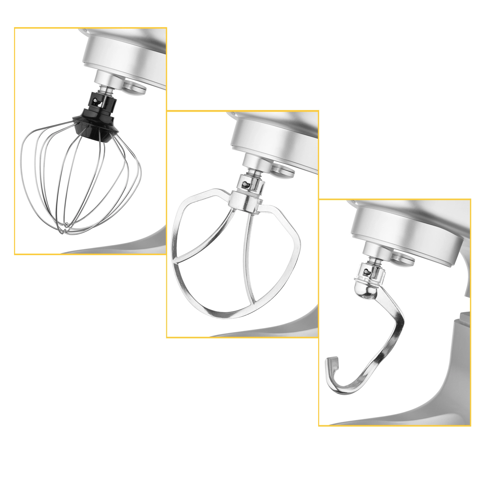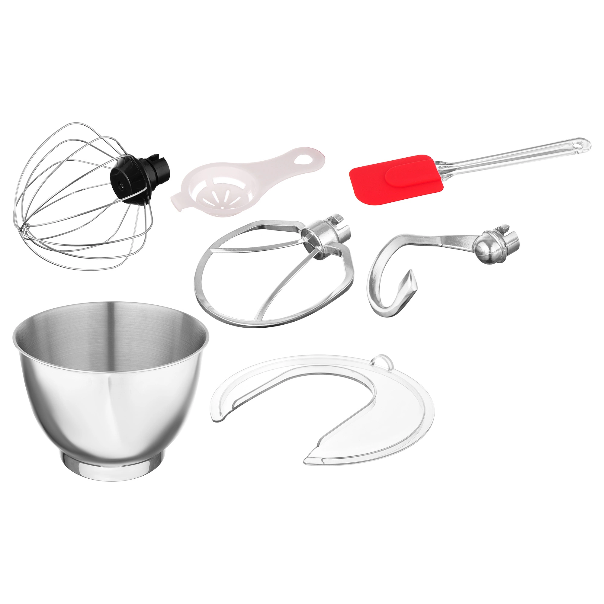 - КомплектацияПланетарный миксер; чаша; защитная крышка; насадка-венчик; насадка-крюк; насадка-лопатка; кулинарная силиконовая лопатка; сепаратор для яиц; руководство пользователя с гаратийным талоном; книга рецептов