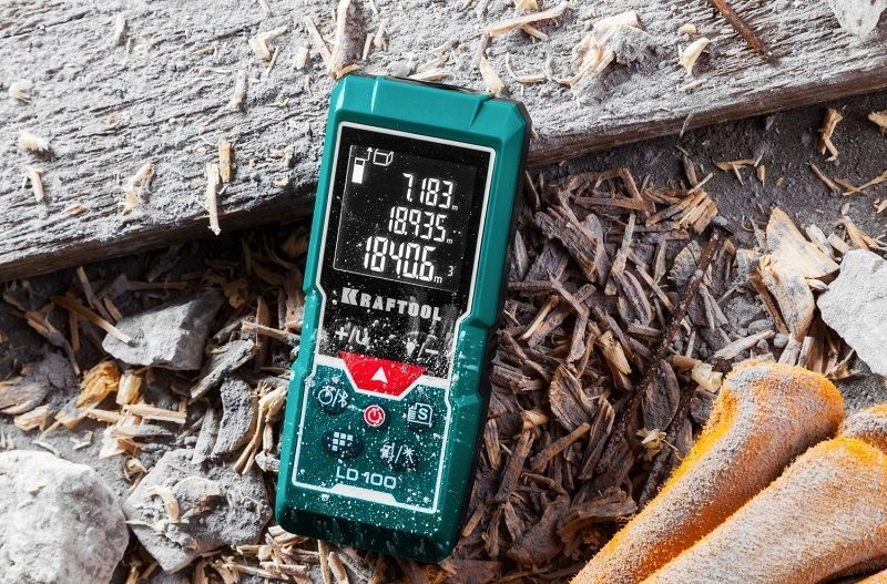 Лазерный дальномер Kraftool LD-100 2кл.лаз. 650нм цв.луч. красный в кейсе (34765)