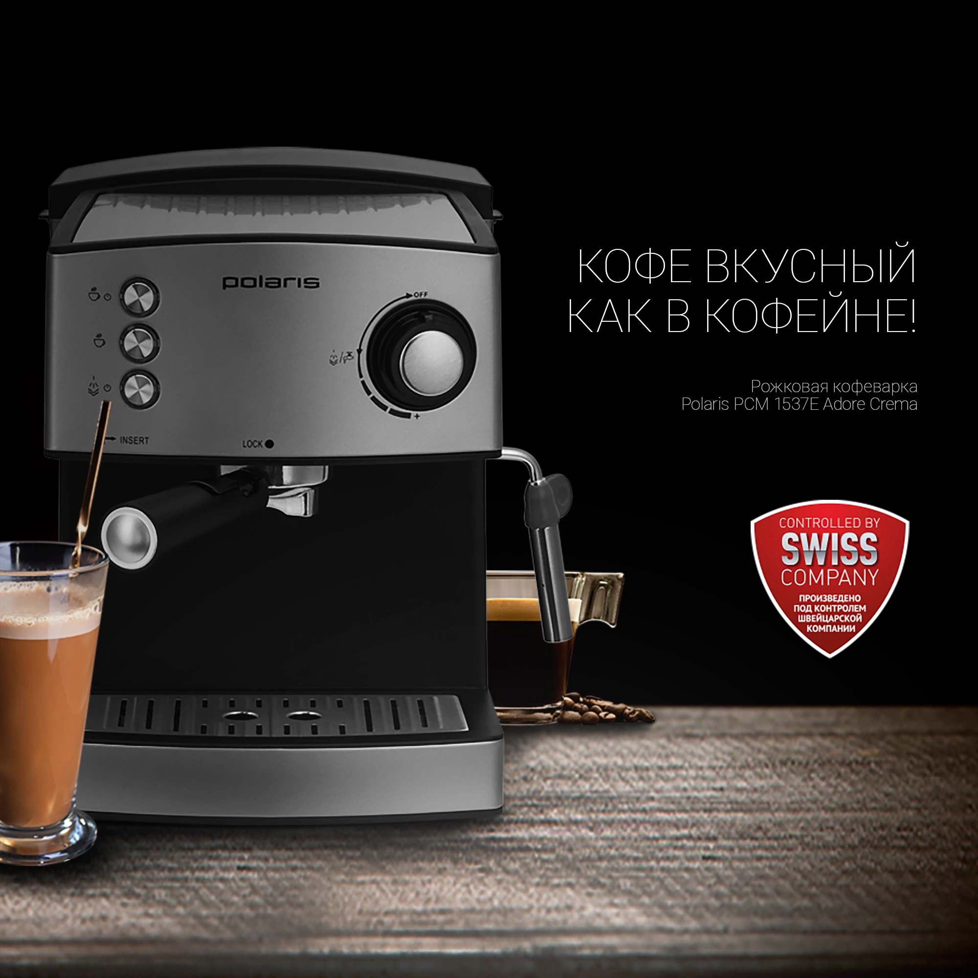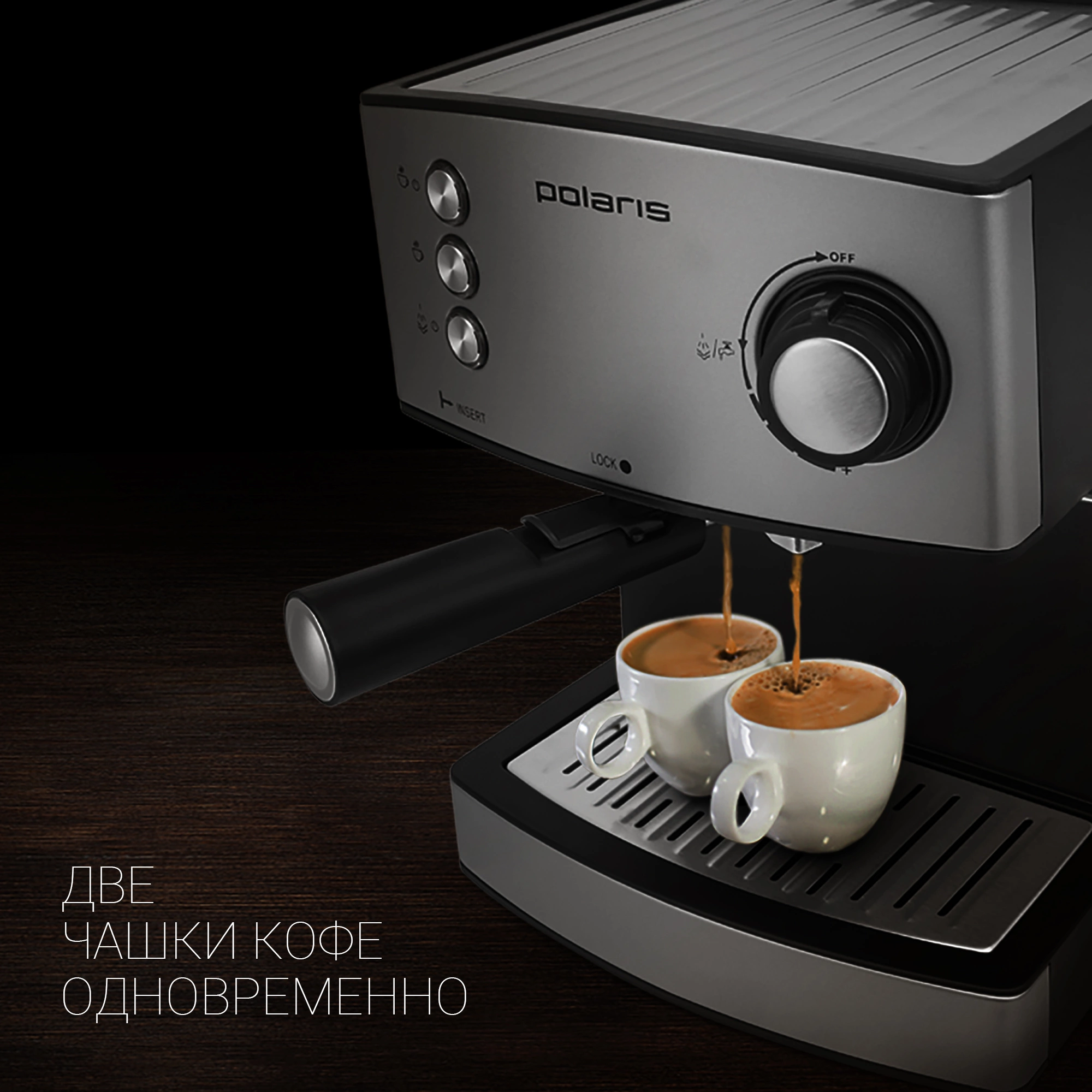 Кофеварка рожковая Polaris PCM 1537AE Adore Crema 850Вт нержавеющая сталь/черный