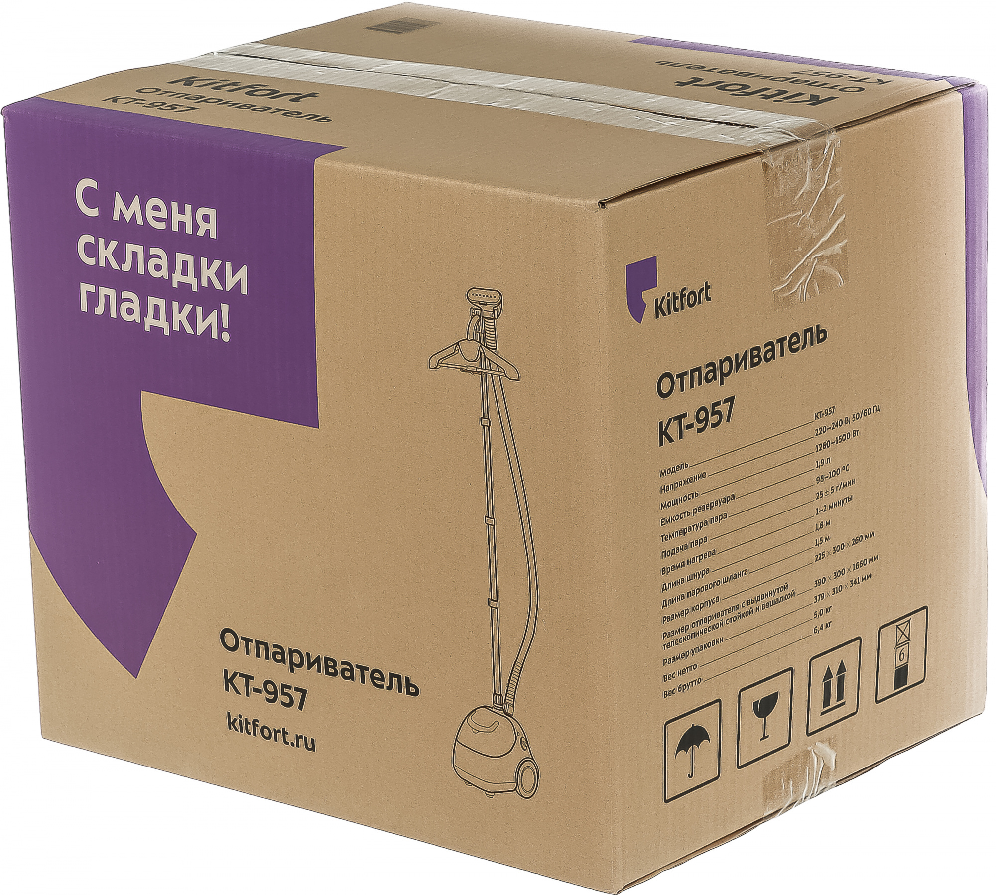 Вертикальный отпариватель Kitfort КТ-957 позволяет быстро прогладить любые вещи и изделия из текстиля. Кроме глажки и отпаривания он обрабатывает вещи мощной струёй горячего пара, проводя таким образом чистку и дезинфекцию.