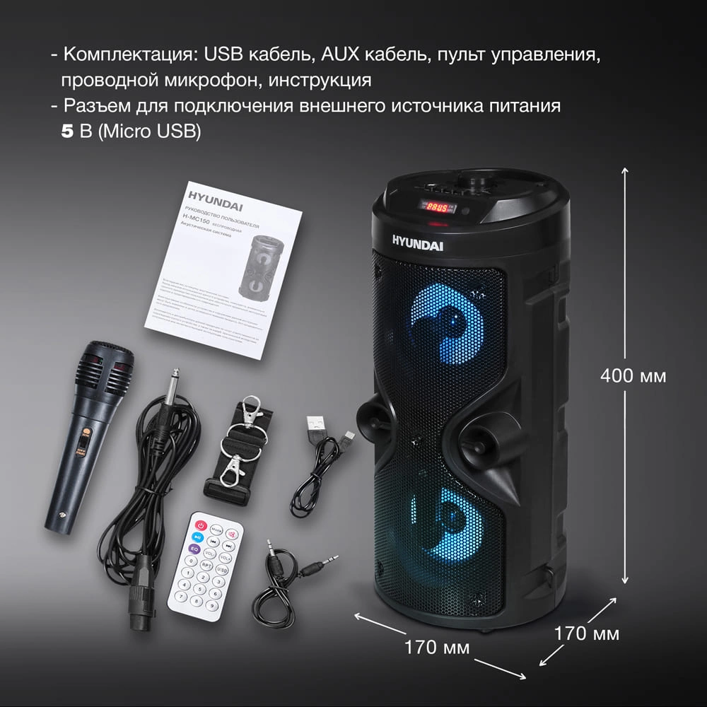 Минисистема Hyundai H-MC150 черный 50Вт FM USB BT SD/MMC