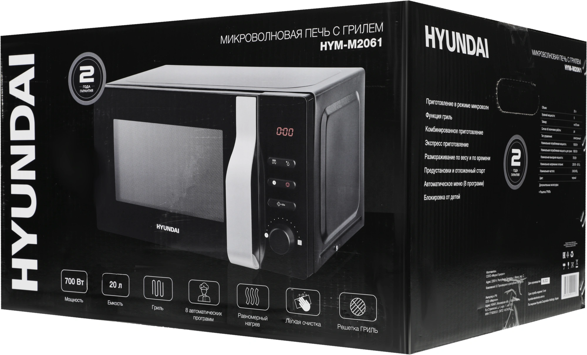 Микроволновая Печь Hyundai HYM-M2061 20л. 700Вт черный