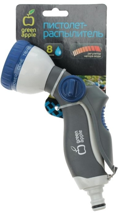 Пистолет-распылитель GREEN APPLE предназначен, в зависимости от режима, для решения различных задач по поливу и проведению очистительных работ. Снабжен регулятором изменения интенсивности струи и фиксатором для длительного полива.