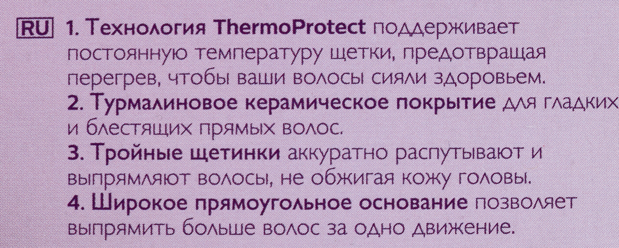 Прямые и блестящие волосы всего за 5 минут. Технология ThermoProtect и специальная форма щетинок гарантируют гладкость и здоровое сияние волос. Тройные щетинки аккуратно распутывают и выпрямляют волосы, не обжигая кожу головы. Два температурных режима (170°C и 200°C) для разных типов волос.