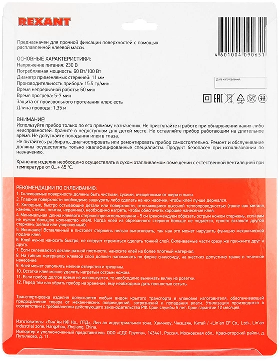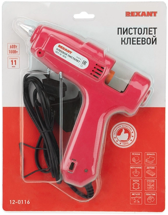 Клеевой пистолет Rexant 12-0116 100Вт 15.5гр/мин стерж.:11мм