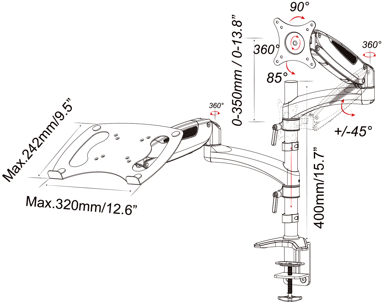 Кронштейн для монитора/ноутбука Cactus CS-VM-LH08-BK черный 13"-27" макс.8кг настольный поворот и наклон
