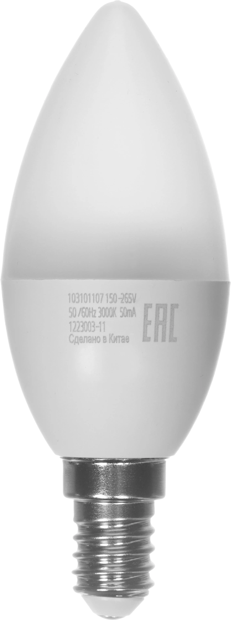Лампа светодиодная Gauss 6.5Вт цок.:E14 свеча 220B св.свеч.бел.теп. 35-C (упак.:1шт) (103101107)