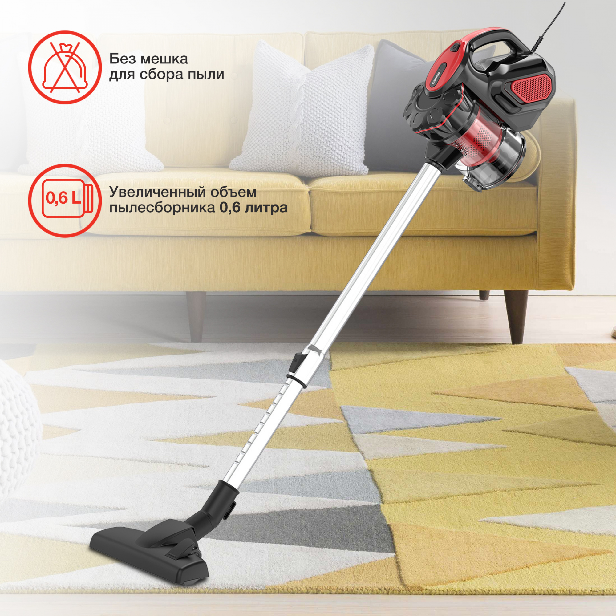 Пылесос ручной Starwind SCH1310 1000Вт красный/черный