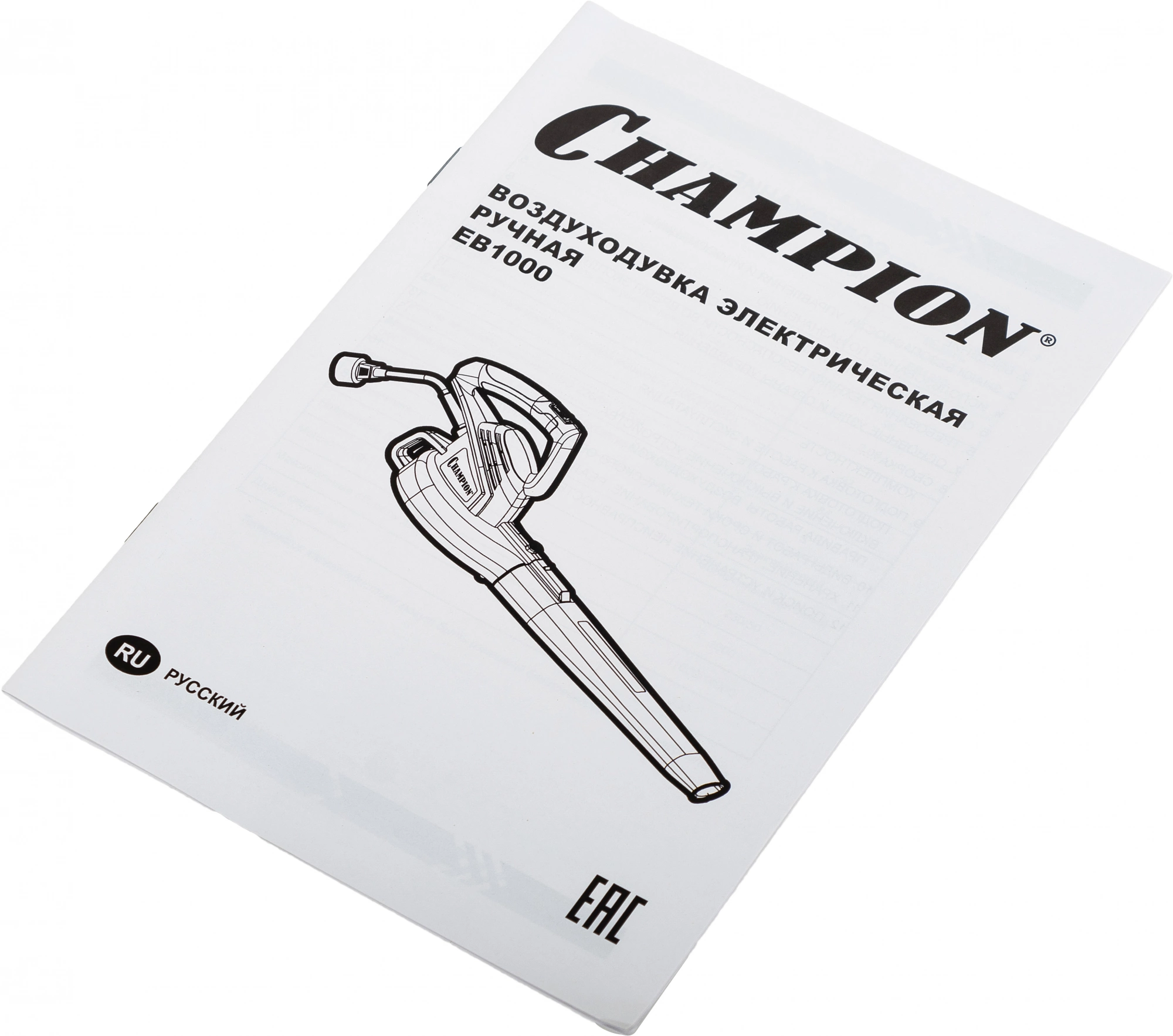 - ОсобенностиНадежный хват. Цельная эргономичная рукоятка обеспечивает надежное удержание инструмента. Удобство. Выпускная труба Champion EB1000 - разборная.